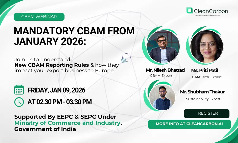Speaker list: Mr. Nilesh Bhattad (Global CBAM Expert), Mr. Shubham Thakur (Sustainability Expert & Climate Journalist), Ms. Priti Patil (CBAM Technical Expert)